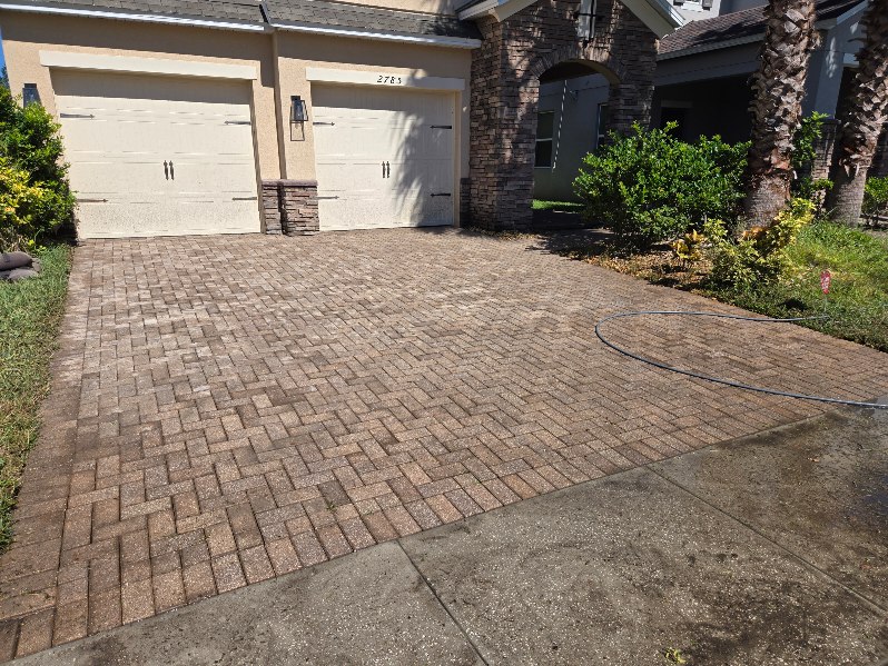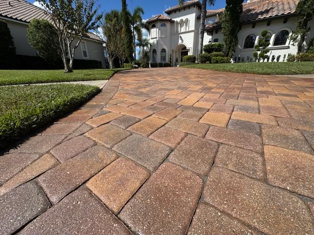 Once cleaned, we install high-quality joint sand (available in different color options) and apply two coats of professional-grade sealer that lasts approximately 3–5 years. This process stabilizes pavers, enhances color, and protects against Florida’s moisture, UV exposure, and erosion.